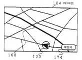 그러나, 종래의 네비게이션장치에서는 항시, 차량이 화면중심이 되도록 지도표시가 이루어지기 때문에, 지도의 표시축척에 의해서는 본래의 안내경로가 화면에서 밀려나와, 경로가 전혀 표시되지 않는 상황이 있다. 이 경우, 본래의 안내경로의 방향 및 위치가 화면상에서 바로 확인할 수 없다. 그래서, 종래에서는 지도축척의 변경조작이 필요했다. 즉, 지도의 표시축척이 본래의 안내경로를 표시할 수 있을때까지 차례로 작아져서, 보다 넓은 범위의 도로지도를 표시하는 조작이 필요했다.However, in the conventional navigation apparatus, since the map display is always performed so that the vehicle becomes the screen center, there is a situation in which the original guide path is pushed out of the screen and the route is not displayed at all by the display scale of the map. In this case, the direction and position of the original guide path cannot be immediately confirmed on the screen. Thus, in the past, the operation of changing the map scale was necessary. In other words, the display scale of the maps became smaller in order until the original guide paths could be displayed, and an operation for displaying a wider range of road maps was required.