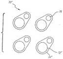 도 4에 도시되어 있는 바와같이, 상기 본딩 패드(46)는 상기 패키지(10)의 층을 이룬 셀프상에 위치되어 있다.  상기 본딩 패드(46)들중 일부는 추가적인 스트립(52)을 가지고 있으며, 이때 이 스트립은 상기 절연 재료의 단부 주위를 둘러싸고 있고 그리고 아래에 있는 인접 전도층(22 또는 26)에 접속되어 있다.  구성 주위의 랩(wrap)은 어떠한 바이어를 사용하지 않고도 상기 본딩 패드(46)와 상기 전도성 플레인(22 또는 26) 사이에 상호 접속을 제공한다.As shown in FIG. 4, the