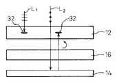 도 4에 도시된 바와 같이, 액정 분자(30)가 기판면과 거의 평행한 상태에 있을 때에는 액정의 배향 방향과 평행한 진동면을 가지는 입사 편광 L1은 2색성 색소(32)에서 흡수된다. 액정의 배향 방향과 직교하는 진동면을 가지는 입사 편광 L2는 2색성 색소(32)에서 흡수되지 않고 액정층(12)을 투과하여 편광 회전 수단(16)을 향해 진행하며, 편광 회전 수단(16)을 2°통과하는 동안에 거의 90°회전되고, 반사판(14)에서 반사하여 액정층(12)에 도달한다. 이때, 편광의 진동면이 90°회전하고 있으므로, 입사 편광 L2는 2색성 색소(32)에서 흡수되어, 액정층(12)을 투과하지는 않는다. 따라서, 액정 분자(30)가 기판면과 거의 평행한 상태에 있을 때에는(전압을 인가하지 않을 때에는) 블랙 표시를 달성할 수 있다. 또한, 액정 분자(30)가 기판면과 거의 수직인 상태에 있을 때에는(전압 인가시에는), 입사 편광이 액정 분자 및 2색성 색소를 투과하여 화이트 표시를 달성할 수 있다.As shown in FIG. 4, when the