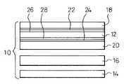 액정층(12)은 한쌍의 투명한 기판(18, 20)사이에 삽입된 것으로, 각 기판(18, 20)의 내면측에는 각각 투명 전극(22, 24) 및 배향막(26, 28)이 설치되어 있다.The