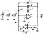 이 구성의 전류전압 변환회로에 의하면 제1의 초전소자(1)로부터 출력되는 전류는 귀환용량 Cf의 임피던스를 사용하여 전압에 변환된다.According to the current-voltage conversion circuit of this configuration, the current output from the first