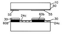 도 36에 도시된 바와 같이, 상기 제1, 제2마스크를 리프트-오프법에 의해 제거하여, 도금에 의해 형성된 접촉층(60)(70)이 전기적으로 상호 분리되게 하고, 필요에 따라 폴리싱법에 의해 전체 노출표면을 연마하여 표면의 평활도를 높인다.As shown in Fig. 36, the first and second masks are removed by a lift-off method so that the contact layers 60 and 70 formed by plating are electrically separated from each other, and a polishing method is necessary. The entire exposed surface is polished to increase the smoothness of the surface.