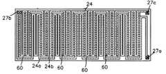 도 20에 도시된 실시예 7은 전술한 실시예 6에 비해 보다 자성유체가 전극위에 두꺼운 두께로 위치할 수 있도록 하기 위하여 일종의 모세관현상에 의해 자성유체막이 지탱되도록 하기 위한 벽체(60)가 제1부화소전극(24a)와 제2부화소전극(24b)들의 밀집영역의 경계를 따라서 연속적으로 소정높이로 설치되어 있는 구조를 갖는다. 상기 벽체(60)는 도 21에 도시된 바와 같이, 모세관현상을 일으킬 수 있도록 육면체상의 단위 블록(60a)이 일직선 상으로 전술한 바와 같이 경계영역을 다라서 일정간격으로 배치되어 있는 것으로, 상기 벽체(60)는 연속되게 이어진 형태로도 제작이 가능하다. 그런데 벽체가 자성유체(30)의 이동경로 중간에 마련되어 이동되는 자성유체(30)의 흐름을 덜 방해할 수 있도록 도 21과 같이 육면체상 블록으로 제작하는 것이 유리하다. 이러한 벽체는 자성유체(30)를 흡착함으로써 일측영역으로 흘러 들어 가는 것을 방지한다.In the seventh embodiment shown in FIG. 20, the