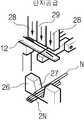 다음에 도 1로 되돌아가서 중성점의 6개의 도출코일(2N)과 중성점 출력단(N)과 집속단자(12)의 관계를 설명하면, 도출코일(2N)은 2단적으로 배치되어 하단에 3열, 상단에 중성점 출력단(N)을 포함하여 4열 배치되고, 상하의 코일은 서로 겹치지 않도록 갈짓자모양으로 교대로 배열되어 있다.  그리고 이들 배열된 도출코일은 구리계 재료로 이루어지는 집속단자(12)로 묶여지고, 각각이 납재(31)를 거쳐 그 집속단자(12)와 전기적으로 또한 기계적으로 결합되어 있어 선간 끼리도 서로 가압접촉하고 있다.Next, referring back to FIG. 1, the relationship between the six