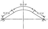 도 6은 중앙의 원호부와 그 양측의 직선부에 의해 구성되는 아치형 구성의 플로 튜브를 설명하기 위한 도면이다.It is a figure for demonstrating the flow tube of an arcuate structure comprised by the circular arc part of a center, and the linear part of both sides.