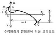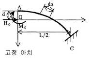 다음에 열팽창에 의한 수직 방향에 관해서는 도 4와 같이, 부정정력(不靜定力)(redundant force)을 H1, 부정정 모멘트(redundant moment)를 M1로 하면 다음 식이 성립된다.Next, with respect to the vertical direction due to thermal expansion, as shown in FIG. 4, the following equation is established when the redundant force is set to H1 and the redundant moment is set to M1.