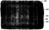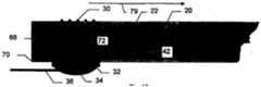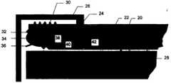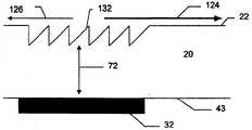 이와는 대조적으로, 직접-결합 또는 “에지(edge)” 트랜스듀서는, 통상적으로 기판의 표면에서 상당한(appreciable) 전력을 가지는 음향파가 직접적으로 생성되는 방식으로 터치스크린 기판에 직접적으로 접착된 압전 엘리먼트를 제공한다. 그래서 인터페이스는 희망 음향 모드로 결합하는 음향 기능뿐 아니라, 기판에 압전 엘리먼트를 접속하는 기계적 기능을 제공한다. 본원에 참조된 미국특허 제 5,162,618 호의 도 2B는 램파를 얇은 기판에 보내기 위하여 사용된 에지(edge) 트랜스듀서를 도시한다. Lardat에 의한 미국특허 제 3,893,047 호를 참조하라. 에지 트랜스듀서는 기판에서의 깊이의 기능으로서 노드(node) 없이 플레이트파에 결합하기 위하여 가장 일반적으로 사용된다. 레일리파에 결합하는 에지 트랜스듀서를 개발하기 위하여 몇몇 연구가 행하여 졌다. 본원에 참조된 Ushida에 의한 일본특허 제 08-305481 호 및 제 08-305482 호를 참조한다. 이러한 에지 트랜스듀서는 소형이지만, 압전 트랜스듀서가 보호되지 않은 채로 있다.In contrast, a direct-coupled or “edge” transducer is a piezoelectric element that is directly bonded to a touchscreen substrate in such a way that acoustic waves, typically having significant power at the surface of the substrate, are produced directly. To provide. The interface thus provides the mechanical function of connecting the piezoelectric element to the substrate as well as the acoustic function of coupling in the desired acoustic mode. 2B of US Pat. No. 5,162,618, which is incorporated herein by reference, illustrates an edge transducer used to direct a lamb wave to a thin substrate. See US Pat. No. 3,893,047 by Lardat. Edge transducers are most commonly used to couple plate waves without nodes as a function of depth in the substrate. Several studies have been done to develop edge transducers that couple to Rayleigh waves. See Japanese Patent Nos. 08-305481 and 08-305482 to Ushida, which is incorporated herein by reference. Such edge transducers are small, but the piezoelectric transducers remain unprotected.