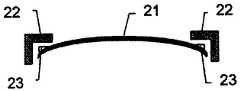 웨지형 트랜스듀서가 패널 표면에 위치되는 일부의 터치스크린 시스템은 패널 표면보다 반드시 높다. 도 2에 도시된 바와같이, 디스플레이가 일반적인 음극선관 같은 곡면 패널로 구성될 때, 웨지형 트랜스듀서(23)가 위치될 수 있는 공간은, 종종 곡면 패널(21) 및 곡면 패널(21)의 주변을 커버하는 베즐(22) 사이에서 나타낸다. 그러나, 디스플레이가 도 3에 도시된 바와같이 액정 디스플레이 또는 플라즈마 디스플레이같은 편평한 패널로 구성될 때, 베즐(25)로 커버된 패널(24)의 표면 주변에서 패널(24) 및 베즐(25) 사이의 틈이 없어서, 웨지형 트랜스듀서를 위치시키기 위한 공간이 없다. 그러므로, 웨지형 트랜스듀서가 사용될 때, 초음파형 터치 패널은 편평한 패널에 적합하지 않다. 그래서, 적용가능한 디스플레이 및 하우징 구성의 형태는 상당히 제한된다.Some touchscreen systems where wedge transducers are located on the panel surface are necessarily higher than the panel surface. As shown in FIG. 2, when the display consists of a curved panel, such as a typical cathode ray tube, the space in which the wedge-