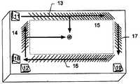 제 2 세트의 어레이 및 트랜스듀서는 제 1 세트의 어레이에 직각으로 제공되고, 유사하게 동작한다. 트랜스듀서의 축이 기판의 물리적 좌표 축에 대응하기 때문에, 되돌아오는 파의 감쇠 타이밍은 기판상의 위치의 데카르트 좌표를 가리키고, 상기 좌표는 추후에 감쇠 물체의 2차원 데카르트 좌표 위치를 결정하기 위하여 순차적으로 결정된다. 상기 시스템은 표면 터치가 표면에서의 전력 밀도를 가지는 표면파 또는 플레이트 파를 감쇠시킨다는 원리에 따라 동작한다. 기판을 가로질러 이동하는 파의 감쇠는, 파의 대응 감쇠가 특정 시간 주기에서 수신 트랜스듀서에 영향을 주도록한다. 그래서, 제어기는 축 좌표 위치를 결정하기 위하여 시간적인 감쇠 특성을 검출하기 위해서만 필요하다. 데카르트 좌표 위치를 결정하기 위하여 두 개의 축을 따라 순차적으로 측정이 이루어진다. 본원에 참조된 미국특허 제 4,642,423호, 제 4,644,100 호, 제 4,645,870 호, 제 4,700,176 호, 제 4,746,914 호 및 제 4,791,416 호, Re. 33,151을 참조하라. 본원에 참조된 Adler에 의한 미국특허 제 4,642,423 호는, 구형의 작은 입체각에 의해 형성된 직사각형 터치스크린 표면에 대한 의사-평탄화 기술을 언급하고 있다.The second set of arrays and transducers are provided at right angles to the first set of arrays and operate similarly. Since the axis of the transducer corresponds to the physical coordinate axis of the substrate, the attenuation timing of the returning wave points to the Cartesian coordinates of the position on the substrate, which in turn is subsequently determined to determine the two-dimensional Cartesian coordinate position of the damping object. Is determined. The system operates on the principle that surface touch attenuates surface waves or plate waves with power density at the surface. Attenuation of the wave moving across the substrate causes the corresponding attenuation of the wave to affect the receiving transducer in a particular time period. Thus, the controller is only needed to detect the temporal decay characteristic to determine the axis coordinate position. The measurements are taken sequentially along two axes to determine the Cartesian coordinate position. U.S. Pat. Nos. 4,642,423, 4,644,100, 4,645,870, 4,700,176, 4,746,914 and 4,791,416, Re. See 33,151. US Pat. No. 4,642,423 to Adler, referred to herein, refers to a pseudo-planarization technique for rectangular touchscreen surfaces formed by spherical small solid angles.