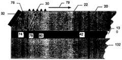 격자의 두께(높이)는 5 mm 이하(예를들어, 약 0.01 내지 3 mm)의 범위, 바람직하게 약 0.1 내지 3 mm, 보다 바람직하게 0.1 내지 1 mm의 범위내에서 선택된다. 격자는 스크린 프린팅(screen printing) 또는 다른 기술에 의해 형성될 수 있다. 격자는 에칭, 커팅 또는 그라인딩(grinding), 또는 침식(ablation), 또는 다른 재료 제거 방법에 의해 형성된다. 격자는 몰딩, 핫 스탬핑(hot stamping), 또는 기판 특성 사전 제작 변형에 의해 형성된다. 격자 엘리먼트는 격자의 반사도 및 투명도의 밸런스를 맞추기 위하여 반사 어레이의 엘리먼트와 유사한 방식으로 높이 및/또는 폭에서 변화할 수 있다. 예를들어, 단조로운 높이 변형 격자가 단방향성을 격자에 제공하기 위하여 사용될 수 있다.The thickness (height) of the grating is selected within the range of 5 mm or less (eg about 0.01 to 3 mm), preferably about 0.1 to 3 mm, more preferably 0.1 to 1 mm. The grid can be formed by screen printing or other technique. The grating is formed by etching, cutting or grinding, or ablation, or other material removal methods. The grating is formed by molding, hot stamping, or substrate property prefabrication variations. The grating element may vary in height and / or width in a manner similar to the elements of the reflective array to balance the reflectivity and transparency of the grating. For example, a monotonous height strain grating may be used to provide unidirectionality to the grating.