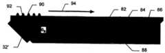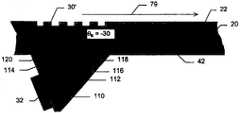 격자 트랜스듀서는 기판의 표면상에 웨지-트랜스듀서 서브어셈블리의 정밀한 각 정렬을 필요로하지 않기 때문에 특히 유리하다. 격자 트랜스듀서에서, 격자의 각 정렬은 유사한 허용오차를 가진다. 그러나 상기 허용오차는 표준 프린팅 공정에 의해 쉽게 충족될 수 있다. 허용오차는 기판 표면상 압전 엘리먼트의 배치를 위하여 좀더 느슨하다.Grating transducers are particularly advantageous because they do not require precise angular alignment of the wedge-transducer subassemblies on the surface of the substrate. In a grating transducer, each alignment of the gratings has a similar tolerance. However, the tolerance can easily be met by standard printing processes. The tolerance is looser for the placement of the piezoelectric element on the substrate surface.