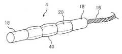 여기서, 상기 연결수단(16)은 상기 강체부(18)에 영구적으로 고정되는 강성을 갖는 재질로 이루어져 있고, 특정적으로 와이어 형태 또는 다수개의 금속사를 꼬여 만든 와이어 형태, 편조선 형태 또는 샤프트 형태 등의 구조로 구성될 수도 있으며, 그 재질 및 구조는 이에 한정되는 것이 아니라 그 구조, 길이 및/또는 두께를 변경함에 따라 상기 연결수단(16)의 유연성을 변경할 수 있다.Here, the connecting