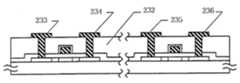 그후, 제 2 층에서 배선 라인들(전극들)(233 내지 236)을 형성하기 위해 접촉 홀들이 형성된다. 따라서, 도3c에 도시된 상태를 얻는다.Then, contact holes are formed to form wiring lines (electrodes) 233 to 236 in the second layer. Thus, the state shown in Fig. 3C is obtained.