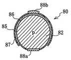 다음에 평탄면(83)의 중심부와, 반도체 소자(81)의 중심을 사이에 두고 평탄면(83)에 대향하는 구면의 정상부에, 상기 실시예와 동일하게 하여, 양극(88a)과 음극(88b)을 형성한다.  이 반도체 디바이스(80)(구면 수광 셀)도 도 8의 반도체 디바이스(10)와 거의 동일한 광전 변환 기능을 나타내어, 넓은 지향성를 가지고 있다.Next, at the top of the spherical surface opposite the
