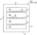 이 소오목부(72)는 반도체 디바이스(10)의 한쪽 절반을 미소한 간극을 가지고 또는 간극 없이 장착 가능하게 형성되지만, 반도체 디바이스(10)의 평탄면(2) 형상에 적합한 평탄부(72a)가 형성되어 있다.  그리고, 각 소오목부(72)의 열 방향 양단측에는 음양의 전극(6a, 6b)에 면접촉시켜 지지하기 위한 지지편(支持片)(74)이 도 29의 지면 가까운 쪽으로 약 0.4mm 정도 돌출하도록 형성되어 있다.  이 베이스 시트(71)에 상기 접속 리드(64, 66)와 동일한 구조의 다수 행의 접속 리드를 형성하고, 각 소오목부(72)에 반도체 디바이스(10)를 장착하여 양극(6a)과 음극(6b)을 대응하는 접속 리드에 도전 가능하게 접속하고, 또한 고착 상태로 한다.  이 때, 지지편(74)의 지지력을 이용하여 반도체 디바이스(10)를 지지하도록 구성해도 된다.  그리고, 접속 리드의 형성을 용이하게 하기 위해, 각 행의 지지편(74)은 연속적으로 형성해도 된다.  이와 같이 다수 행으로 형성한 접속 리드가 상기 접속 리드(64, 66)와 동일하게 각 열의 다수의 반도체 디바이스(10)를 직렬하는 동시에 각 행의 반도체 디바이스(10)를 병렬하는 도전 접속 기구를 구성 한다.Although the small recessed