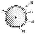 도 31에 나타내는 반도체 소자(81)는 상기 도 5에 나타내는 반도체 소자(1)와 동일한 것이며, 구형의 p형 실리콘 단결정(82)에 하나의 평탄면(83)을 형성하고, 실리콘 단결정(82)의 표면에 박막의 n+실리콘 성장층(85)을 성장시키기 전에 평탄면(83)과 그 외주 근방부에 박막 단결정 성장 시에 마스킹하기 위한 마스크용  박막(84)(실리콘 산화막)을 상기 실시예와 동일하게 형성한다.  그리고, 필요에 따라, 마스크용 박막(84)의 외면에 실리콘 질화막(Si3N4)을 형성해도 된다.The