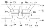 그리고, 제1 및 제2 캡 절연막(20a, 20b), 제1 및 제2 측벽 스페이서(19a, 19b) 및 반도체 기판(11)을 덮는 층간 절연막(30)이 형성되어 있고, 층간 절연막(30)에는 드레인 접합부(16d)를 노출하는 드레인 컨택홀(35)이 형성되어 있다.An