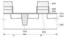 우선, 도2a에 도시된 바와 같이 실리콘 기판(200)에 소정의 소자 분리 공정으로 트렌치 소자 분리막(STI : 202)을 형성하여 셀 영역(A)과 페리 영역(B)을 분리한다. 그리고, 상기 실리콘 기판에 웰 임플란트 공정을 진행하여 도시되지는 않지만 N 웰 및 P 웰을 형성한다.First, as shown in FIG. 2A, a trench isolation layer (STI) 202 is formed on the