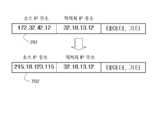 도 7은 본 발명의 일 실시예에 따라 입력 패킷의 소스 IP 주소의 변환을 도시한 도면.7 is a diagram illustrating translation of a source IP address of an input packet according to an embodiment of the present invention.