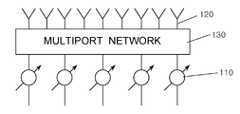 도 1a 내지 도 1h 는 종래기술에 따른 수동 다단자망을 갖는 배열구조도이다. 도 1a 에 도시된 바와 같이, 수동 다단자망을 갖는 배열 구조는, 위상 배열 안테나 시스템의 빔성형 및 빔조향 블록에서 입출력 신호간에 요구되는 위상차를 제공하는 위상 천이기(110), 안테나 배열 소자(120), 상기 위상 천이기(110)와 배열 소자(120) 사이에 삽입되어 FTEP를 위한 요구 진폭 및 위상 분포를 형성하는 다단자망(Multiport network, 130)을 포함하고 있다. 그 밖에 다양한 다단자 망의 실시예가 도 1b 내지 1h 에 도시되어 있다. 그러나, 이와 같은 배열 구조는 이차원 빔 스캐닝 시 급전망이 복잡하여 효율이 떨어지고, 부피가 큰 것과 동시에 무게도 무거우며, 시스템 가격이 높다는 등의 문제점이 있다.1A to 1H are arrangement diagrams having a passive multi-terminal network according to the prior art. As shown in FIG. 1A, an array structure having a passive multi-terminal network includes a