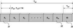 도 3은 본 발명에 따른 60㎓ 무선 LAN을 위한 시간영역에서 짧은(Short) 프리앰블의 구조를 나타내는 도면이다.  TSP의 길이를 갖는 시간영역의 짧은 프리앰블은 데이터 심볼 주기 내에서 16번 반복되는 S 심볼(31, 32), 및 보호구간의 길이를  가지며 S 심볼과 180도의 위상차를 가지는 IS 심볼(33)로 구성된다.3 is a diagram illustrating a structure of a short preamble in a time domain for a 60 GHz wireless LAN according to the present invention. The short preamble in the time domain having the length of TSP is composed of
