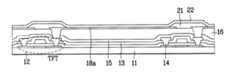 이어, 상기 TFT(12)를 포함한 전면에 제 1 절연막(13)을 형성하고, 상기 제 1 절연막(13)과 게이트 절연막(12b)을 관통하여 TFT(12)의 소오스 전극(12d) 및 드레인 전극(12e)에 각각 연결되는 콘택(14)을 형성하고, 전면에 제 2 절연막(15)을 형성한다.Subsequently, a first