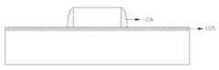 다음, 도 3에 도시된 바와 같이, 인젝션 게이트를 형성한다. 질화막이 에칭된 영역에 남아 있는 패드 산화막을 모두 제거한 후 산화공정을 통해 터널 산화막(105)을 50Å 내지 120Å의 두께로 성장시킨다. 이후 인젝션 게이트를 형성하기 위해 밴드갭(Band Gap)이 실리콘 기판보다 크고 터널 산화막(SiO2)보다 작은 인젝션 게이트용 막질을 기판의 전면에 100Å 내지 1000Å의 두께로 증착한다. 상기 인젝션 게이트용 막질을 웨이퍼 전면에 증착한 후 비등방성 블랭킷 식각으로 질화막의 측벽에 사이드월 형태의 인젝션 게이트(104)를 형성시킨다. 상기 인젝션 게이트용 막질은 밴드갭이 1.1eV 보다 크고 9.0 eV 보다 작은 물질이면 모두 사용이 가능하고, 보다 바람직하게는 Al2O3, Y2O3, HfO2, ZrO2, BaZrO2, BaTiO3, Ta2O5, CaO, SrO, BaO, La2O3, Ce2O3, Pr2O3, Nd2O3, Pm2O3, Sm2O3, Eu2O3, Gd2O3, Tb2O3, Dy2O3, Ho2O3, Er2O3, Tm2O3, Yb2O3 또는 Lu2O3등과 같은 산화막과 SiC, AlP, AlAs, AlSb, GaP, GaAs, InP, ZnS, ZnSe, ZnTe, CdS, CdSe, CdTe 등과 같은 화합물 반도체를 사용할 수 있다.Next, as shown in FIG. 3, an injection gate is formed. After removing all of the pad oxide film remaining in the nitride-etched region, the