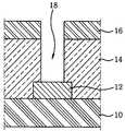 도 1b에 도시된 바와 같이, 층간 절연막(14) 상부에 포토레지스트를 도포하고 콘택홀 영역을 정의하는 마스크로 포토레지스트를 노광한 후에 이를 현상함으로써 포토레지스트 패턴(16)을 형성한다.  계속해서 포토레지스트 패턴(16)에 의해 드러난 층간 절연막(14)을 건식 식각 공정으로 식각하여 하부 금속 배선(12)이 노출되는 콘택홀(18)을 형성한 후에 에슁(ashing) 공정으로 포토레지스트 패턴(16)을 제거한다.As shown in FIG. 1B, the photoresist pattern 16 is formed by applying a photoresist on the