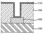 우선 도 3a에 도시된 바와 같이, 반도체 기판으로서 실리콘 기판에 반도체 소자, 예를 들어 MOSFET 제조 공정을 실시한다.  그리고 그 위에 BPSG, PSG, BSG, HDP 산화막 등의 절연 물질로 층간 절연막(100)을 형성하고 층간 절연막(100) 상부에 하부 MOSFET와 수직으로 연결하기 위한 하부 금속 배선(102)을 형성한다.  이때 하부 금속 배선(102)은 알루미늄 등의 금속 물질, 이의 합금 물질로 형성한다.  그리고 층간 절연막(100) 상부에 다시 층간 절연막(104), 예를 들어 HDP 산화막으로 증착하고, 그 표면을 화학기계적연마(CMP) 공정으로 평탄화한다.First, as shown in FIG. 3A, a semiconductor device, for example, a MOSFET manufacturing process is performed on a silicon substrate as a semiconductor substrate. An