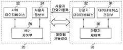 전술의 초기화과정이 끝나면, 서버시스템(20)은 사용자가 원하는 데이터베이스(22)의 데이터변경여부를 감시하며, 데이터가 변경될 때마다 변경된 데이터만을 해당 단말기시스템(30)으로 전송해준다.  해당 단말기시스템(30)은 수신된 데이터를 이미 저장된 데이터와 비교하여 데이터를 갱신하여 단말기데이터베이스(32)를 재구성한다.  만약 데이터가 변경되어서 새로운 내용을 전송해 주어야 하는데 해당 사용자의 단말기시스템과 연결이 불가능하면, 서버제어부(26)는 변경된 데이터에 관련된 정보를 사용자정보부(24)에 기록하여 차후 연결가능할 때에 이용한다.  이로써, 사용자는 초기에 서버에 등록만 해놓으면, 서버가 자동으로, 단말기데이터베이스(32)의 해당 데이터를 갱신하기 때문에 서버와의 접속없이 항상 새로운 정보의 검색이 가능하다.After the above-described initialization process, the