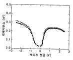 도 3은 열처리 공정 후 하프늄 실리콘 산화물의 단일층 및 하프늄 실리콘 산화물/하프늄 실리콘 산질화물의 이중층의 게이트 전압에 따른 캐패시턴스를 측정한 그래프이다.3 is a graph of capacitance measured according to the gate voltage of a single layer of hafnium silicon oxide and a double layer of hafnium silicon oxide / hafnium silicon oxynitride after the heat treatment process.