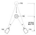 여기에서, 유도물체(720)(730)는 도 6에서 대상물체가 위치하는 대상영상 위치점을 중심으로 상기 주시거리 조정 장치에 위치하는 방향에서 상기 관찰자 방향으로 이동하거나 또는 상기 관찰자 방향에서 상기 주시거리 조정 장치 방향으로 이 동하게 된다. 두 대의 카메라(700)(710)는 이와 같이 순차적으로 이동하는 유도물체를 촬상하게 된다. 순차적으로 이동하는 유도물체를 촬상하여 얻어진 유도영상 데이터는 유도물체의 위치에 따라서 각각 유도영상 촬상거리가 상이하게 된다.Herein, the guide objects 720 and 730 move in the direction of the observer in the direction located in the viewing distance adjusting device with respect to the target image location point where the object is located in FIG. 6 or the gaze in the direction of the observer. It will move in the direction of the distance adjuster. The two