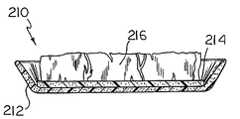 본 발명의 발포체는 식품 또는 차단 포장재, 산업적 및 수력학적 오일 포획 및 흡수, 세정 및 신체에 착용하는 유아 또는 성인용 기저귀와 같은 각종 흡수용품에 유용하다.  쉬트형 발포체는 특히 기저귀로 디자인, 절단 또는 성형될 수 있다.  쉬트형 발포체는 육류용 트레이 또는 기타 식품 포장 형태로 열성형되거나 기타 방법으로 성형되도록 특정하게 적용시킬 수 있다.  쉬트형 발포체는 또한 육류용 트레이 속에 삽입물 또는 흡수 패드로서 사용하도록 특정하게 적용될 수 있다.  본 발명의 육류용 트레이는 도 10 및 도 11에 도시되어 있다.  육류용 트레이(210)는 독립기포형 플라스틱 발포체 트레이(212)와 그 속에 배치되어 있는 연속기포형 압출 발포체 삽입물(214)을 포함한다.  육류(216)는 바닥 트레이(212) 속의 삽입물(214) 위에  배치된다.  필요하다면, 바닥 트레이를 골판지 또는 라이더판 또는 발포체가 아닌 플라스틱 재료와 같이 발포체와 상이한 재료로부터 제조될 수 있다.  바닥 트레이(212)의 경우와 같이 발포체인 경우, 이는 발포체 삽입물에 비해 연속기포 함량이 통상 훨씬 낮다.  바닥 트레이와 삽입물은 바람직하게는 별도로 제작되고 삽입물을 바닥 트레이의 수용부에 배치한다.   임의로, 바닥 트레이에 삽입물을 부착시키는 데 접착제를 사용할 수 있다.  모든 유형의 육류가 흡수성 삽입물이 장착된 트레이 속에 포장될 수 있다.  가금류는 비교적 다량의 액체를 배출하므로, 상기 트레이로 가금류를 포장하는 것이 특히 유리하다.The foams of the present invention are useful in a variety of absorbent articles, such as baby or adult diapers, for food or barrier packaging, industrial and hydraulic oil capture and absorption, cleaning and body wear. Sheet-like foams can in particular be designed, cut or molded into diapers. Sheet-like foams may be specifically adapted to be thermoformed or otherwise molded in meat trays or other food packaging. Sheet-like foams may also be specifically adapted for use as inserts or absorbent pads in meat trays. The meat tray of the present invention is shown in FIGS. 10 and 11. The