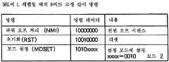 모드 설정 명령은, 명령 모드 지정 신호(SEL)가 H 레벨로 되었을 때의 동작 모드를 설정하는 명령이다.  모드 설정 명령은 하위 4 비트로 동작 모드가 지정된다.  예를 들면, 하위 4 비트가 0010인 경우에는 동작 모드(2)의 설정이 요구되어 있게 된다.The mode setting command is a command for setting an operation mode when the command mode designation signal SEL becomes H level. The mode setting command specifies the operation mode with the lower 4 bits. For example, when the lower 4 bits are 0010, setting of the