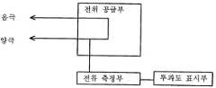 본 발명에 따르면, 상기 센서에 일정한 전압을 공급하였을 때 발생하는 전류를 측정하는 장치와 이 전류 값을 필름의 산소 투과도 값으로 변환하여 표시해주는 장치가 센서의 양극에 연결되어 있어, 이를 통해 필름의 산소 투과도를 빠르고 간 편하게 측정할 수 있다. 또한, 상기 센서에는 측정 필름을 음극에 밀착 고정시키기 위한 수단(예를 들면, O-링)이 갖추어져 있다. 도 2는 센서에 일정한 전압을 공급하여 음극과 양극 사이에 전위차를 유지시켜 주고 센서에 흐르는 전류를 필름의 산소 투과도 값으로 변환하여 표시해주는 본 발명에 따른 산소 투과도 측정 장치의 개념도를 나타낸다.According to the present invention, a device for measuring a current generated when a constant voltage is supplied to the sensor and a device for converting and displaying the current value into an oxygen permeability value of the film is connected to the anode of the sensor, thereby Oxygen permeability can be measured quickly and easily. Moreover, the said sensor is equipped with the means (for example, O-ring) for closely fixing a measuring film to a cathode. 2 is a conceptual diagram of an oxygen permeability measuring apparatus according to the present invention for maintaining a potential difference between a cathode and an anode by supplying a constant voltage to the sensor, and converting and displaying a current flowing through the sensor into an oxygen permeability value of the film.