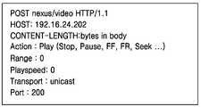 특히, 만약 디바이스가 명령과 데이터를 모두 전송할 수 있는 HTTP 프로토콜을 이미 가지고 있는 경우라면, RTP로 데이터를 전송받기 위한 명령을 전달하기 위해서 RTSP 라는 부가적인 프토토콜을 사용하기 보다는 이미 가지고 있는 HTTP를 이용하는 것이 바람직할 수 있다.In particular, if the device already has an HTTP protocol that can send both commands and data, it uses HTTP already in place rather than using an additional protocol called RTSP to send commands to receive data over RTP. It may be desirable.