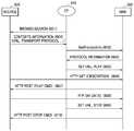 AV 전송 서비스부(327)는 play, stop, pause, seek 등과 같은 컨텐츠의 흐름을 제어한다.  특히, 본 발명에 따라서 AV 전송 서비스부(327)는 싱크 디바이스로부터 수신한 HTTP 제어 명령을 해석하는 HTTP 제어 명령 해석부(328)를 포함한다.  본 발명에 따른 HTTP 제어 명령은 싱크 디바이스가 RTP를 이용하여 컨텐츠를  제공받거나, 제어하거나 하는 것을 요구하는 명령이다.  HTTP 제어 명령 해석부(328)는 이와 같이 본 발명에 따른 HTTP 제어 명령을 수신하여 이를 해석하며, 그 해석된 정보에 기초하여 AV 전송 서비스부(327)는 RTP를 이용하여 컨텐츠를 싱크 디바이스로 전송하도록 제어한다.The AV