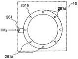 또한, 도 3a에 도시한 바와 같이, 석영으로 제조된 링형의 샤워 헤드(261b)를 구성하고, 이 샤워 헤드(261b)에 다수의 가스 분출 구멍(216a)을 그 원주 상에 (바람직하게는 그 원주 상에 거의 같은 간격으로 배치하여) 아래쪽(적재대(20)의 방향)을 향하여 개구하며, 도통관(261)을 이 링형의 샤워 헤드(261a)에 접속한 것을 처리 용기(10) 내의 소정 위치에(바람직하게는 거의 수평으로) 배치하여 ClF3 가스를 처리 용기(10) 내에 공급하여도 양호하다.In addition, as shown in Fig. 3A, a ring-shaped