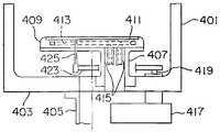 이 도면에 있어서, 부호 401은 처리 용기를 나타낸다. 이 처리 용기(401)의 저부에는 하판(403)이 설치되어 있고, 이 하판(403)의 중심부에는 배기관(405)이 설치된다.In this figure,