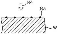 따라서, 도 1에 도시된 H2 가스원(36)으로부터 유량 제어기(34)를 통해 가스 통로(33A)에 환원 가스로서 H2 가스를 공급한다. 유도 코일(35)에 고주파 전력을 공급함으로써, 가스 통로(33A)에 공급된 H2가스는 플라즈마 형성관(30) 내에서 플라즈마화되고, 활성 가스종으로서 플라즈마 형성관(30)의 개구부(30a)로부터 처리 용기(10) 내에 적재된 웨이퍼(W) 상에 흘러 내려간다(단계 S309). 그리고, 도 5c에 도시한 바와 같이, 상기 H2 환원 가스(84)는 웨이퍼(W) 상에 잔류하는 염소(83)를 환원 작용에 의해 웨이퍼(W) 표면으로부터 제거한다(단계 S310).Therefore, the H2 gas is supplied as the reducing gas to the gas passage 33A from the H2 gas source 36 shown in FIG. 1 through the