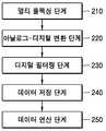 도 4를 참조하면, 본 발명에 따른 신호 처리 방법은 디지털 신호들을 필터링하여 출력하는 단계(230), 필터링된 신호값들을 연산 데이터들로써 저장하는 단계(240) 및 소정의 커맨드에 응답하여 저장된 연산 데이터들을 연산하여 출력하는 단계(250)를 구비한다.Referring to FIG. 4, in the signal processing method according to the present invention, a method of filtering and outputting
