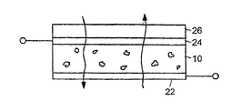 도 3에 도시한 바와 같이, 본 발명의 또다른 실시양태에 따른 전기발광 소자는 보호층 (26) 뿐만 아니라 복합체 (10)의 양측면에 한 쌍의 전도층 (22 및 24)을 포함한다.As shown in FIG. 3, the electroluminescent device according to another embodiment of the present invention includes not only the
