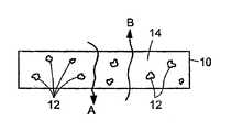 특히, 도 2에 도시된 바와 같이, 복합체 (10)를 이용하는 전기발광 소자는 또한 보호 코팅 (16)을 포함할 수 있고, 임의로 교류 공급원 (20A 및 20B)에 각각 전기적으로 결합된 한 쌍의 전도체 (18A 및 18B)를 포함할 수 있다.  다른 실시양태에서, 복합체 (10) 및 코팅 (16)은 소자의 적용 또는 사용 시점에 전도체 또는 모선 상에 위치될 수 있다.  보호 코팅 (16) 및 전도체 (18A 및 18B)는 또한 수증기가 이들 물질을 통과할 수 있도록 충분히 높은 수증기 투과율을 갖는다.  또한, 보호 코팅 (16) 및 전도체 (18A 및 18B) 각각의 표면 에너지는 약 32 내지 약 46 dyne/cm이다.  또한, 중합체 물질과 보호 코팅 사이의 표면 에너지 차이가 비교적 작게 유지되고, 보호 코팅과 전도체 사이의 표면 에너지 차이가 비교적 작게 유지 되는 것이 바람직하다.  따라서, 수증기는 중합체 물질과 보호 코팅 사이의 계면에서 또는 중합체 물질과 전도체 사이의 계면에서 응축되지 않는다.  이러한 이유로, 수증기는 전기발광 소자 내에 잔존하지 않으며, 따라서 수증기의 유무는 전기발광 소자의 성능에 실질적으로 영향을 미치지 않을 것이다.In particular, as shown in FIG. 2, the electroluminescent device utilizing the