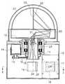 제3반사거울(20)에 의해 반사된 빔은 회전축(11) 하단에 설치된 제1프레넬렌즈(24)에 결상되고 여기서 맺혀진 상은 제1프레넬렌즈(24)를 통과하면서 모아지게 되고 이렇게 모아진 작은 반경은 빔은 회전축(11) 내에 설치된 비축렌즈(23)를 통과하게 된다.The beam reflected by the