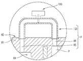 또한, 본 발명의 스크롤 압축기의 용량 가변장치의 제2 실시예는, 도 5에 도시한 바와 같이, 고정 스크롤의 랩(82)과 선회 스크롤의 랩(92)에 의해 형성되는 중간 압력 상태의 압축 포켓(P)과 상기 압축 포켓(P)으로 냉매가 흡입되는 흡입측을 연통시키는 바이패스 유로(F)와, 상기 바이패스 유로(F)를 개폐하는 개폐 수단(100)을 포함하여 구성된다.In addition, in the second embodiment of the variable displacement device of the scroll compressor of the present invention, as shown in Fig. 5, the compression in the intermediate pressure state formed by the