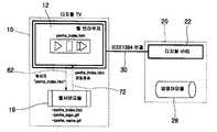 도 1과 도 2는 IEEE1394 버스(30)를 통하여 디지탈 TV(10)와 디지탈 VHS(20)를 연결하여 구성된 홈 네트워크 시스템에서 종래기술인 홈와이드웹 제어방식에 따라서 디지탈 TV(10)상에서 디지탈 VHS(20)를 제어하는 과정을 도시한 것이다.  이 홈와이드웹 제어방식에서는 사용자가 먼저 디지탈 TV(10)의 웹 브라우저(12) 상에서 홈 네트워크 기기리스트 페이지를 로딩시켜 현재 네트워크에 접속되어 있는 기 기들의 리스트를 보게 되는데 (40, 50), 도 1은 웹 브라우저(12) 상에 디지탈 VHS(20)의 아이템(item)이 생성되는 것을 도시한다.  즉, 홈와이드웹에서는 각 기기마다 자신을 표시하기 위한 기기표현정보를 구비하도록 되어 있는데, 자기자신에 대한 아이콘 이미지로서 logo.gif 파일을 가지고 자기 자신의 기기이름에 대한 이미지로서 name.gif를 가지고 있도록 되어 있다.  웹브라우저(12)는 IEEE1394 버스(30)상에 현재 존재하는 각 기기에 대하여 기기표현정보(logo.gif, name.gif)를 가져와서 도 1에 도시된 바와 같이 기기표시 아이콘(14)을 구성한다.  또한, 홈와이드웹 규격에서는 전술한 기기표현정보 이외에 자신을 제어하기 위해 필요한 기기제어정보(또는, 기기제어페이지)로서 index.htm이라는 파일을 구비하도록 되어 있고, 이에 따라 도 1의 디지탈 VHS(20)는 내부에 index.htm을 갖는다.  이 기기제어 페이지에 사용자가 액세스할 수 있도록 하기 위해 도 1에 도시한 바와 같이 전술한 logo.gif에는 링크로서 <A href="index.htm"></A>이라고 되어 있다.1 and 2 illustrate a digital VHS on a