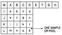 도 2는 종래 기술에 따른 H.264 표준안의 인트라 4x4 모드에서 이용되는 인접화소를 설명하기 위한 참고도.2 is a reference diagram for explaining an adjacent pixel used in an intra 4x4 mode in the H.264 standard according to the prior art.