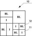 본 발명의 제2 실시예는 도 13과 같이 상기 최적의 서브 블록의 조합으로 구성된 매크로블록(10)에 대하여, 각 서브 블록별로 종래와 같이 그대로 시간적 차분을 구할 것인지, 시간적 차분을 구하는 대신에 BL 예측 모드를 적용할 것인지를 판단하는 것을 특징으로 한다. 도 13에서 I(11)는 시간적 차분을 적용할 서브 블록을, BL(12)는 BL 예측 모드를 적용할 서브 블록의 일 예를 나타낸다.According to the second embodiment of the present invention, as shown in FIG. 13, for the