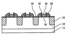 도36(a) 내지 (c)는, 실리콘 질화막의 사이드 월(18)과 실리콘 질화막(19)을 형성하는 공정을 도시하는 도이다.36A to 36C show a step of forming the