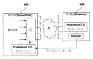 도1에서 {C1, C2, C3, ... , CL}은 predefined 집합을 정의한 것이고, predefined 집합의 각 원소(Cl)는 행렬이다. 이 행렬들{C1, C2, C3, ... , CL}을 구성하는 가이드는 정규 직교성(orthonormality)과 최대 최소거리(maximum minimum-distance)이다. 이때 정규 직교성이란을 의미하고, 최대 최소거리는 각 행렬들간의 최소거리가 최대인 행렬들로 predefined 집합을 구성해야 하는 것을 의미한다. predefined집합의 원소를 정하기 위해, 수신단(200)은 모든 행렬을 일일이 검색한다. 그리고 각 행렬들간의 최소거리가 최대인 행렬들을 predefined 집합의 원소(후보행렬)로 결정한다.In FIG. 1, {C1 , C2 , C3 , ..., CL } define a predefined set, and each element C1 of the predefined set is a matrix. The guides that make up these matrices {C1 , C2 , C3 , ..., CL } are orthonormality and maximum minimum-distance. In this case, normal orthogonality The maximum minimum distance means that a predefined set must be composed of matrices with the maximum minimum distance between the matrices. To determine the elements of the predefined set, the